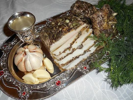 Можно подумать, что в Украине сало ели всегда, но это не так. Интерес к этому продукту появился на берегах Днепра гораздо позже, чем в других европейских странах. Активно есть сало украинцы начали только в 17 столетии, в самый разгар турецких и татарских набегов. Так что культ сала и вообще свинины был вынужденным. Мусульмане, всегда угонявшие с собой скот, были равнодушны к свиньям, которых им запрещала употреблять в любом виде их вера. В ту пору на территории Украины сало в народе начали употреблять с чем только можно — с борщом и варениками, в пирожках и колбасах. Так местные жители надежно защитили свои припасы от татарской жадности. Когда нашествия остались позади, сало осталось любимым кушаньем. В наши дни сало прочно ассоциируется с Украиной. Традиционное украинское сало с солью, перцем и чесноком считается классикой, но при этом существует множество других рецептур, как сложных, так и самых простых. Сало можно добавлять куда угодно, особенно если оно пережарено в золотистые ароматные шкварки. Сало стало настоящим предметом культа и попало не только в кулинарную традицию украинского народа, но и в фольклор. Песни и анекдоты про сало стали неотъемлемой частью устного народного творчества, а в 2011 году во Львове даже открылся музей «Сало», где представлены фигуры Мэрилин Монро, Тараса Бульбы, Николая Гоголя из сала, а также живописные полотна с легендарным блюдом. Более того, недавно в одном из научно-исследовательских институтов страны создали искусственное сало!